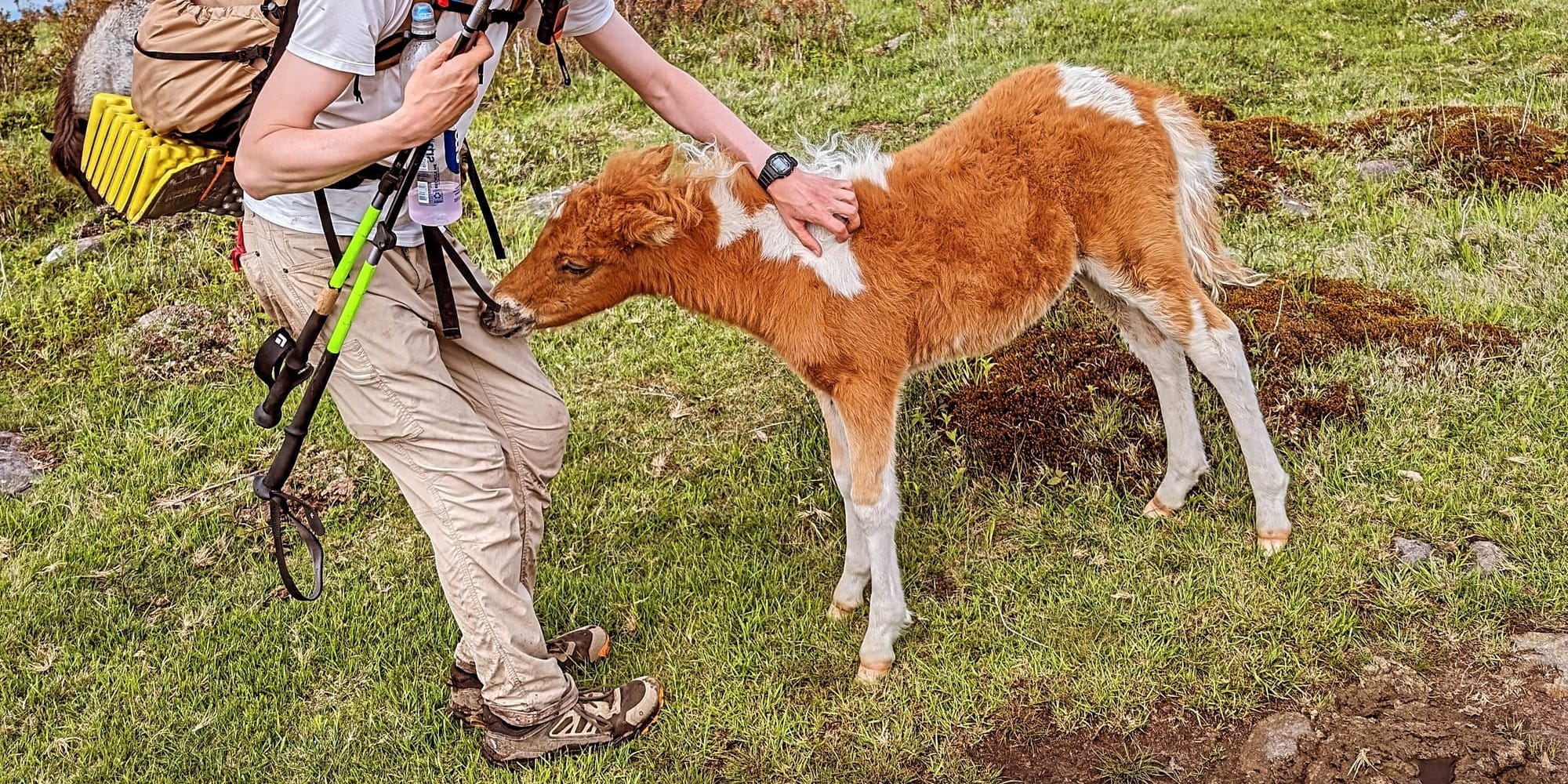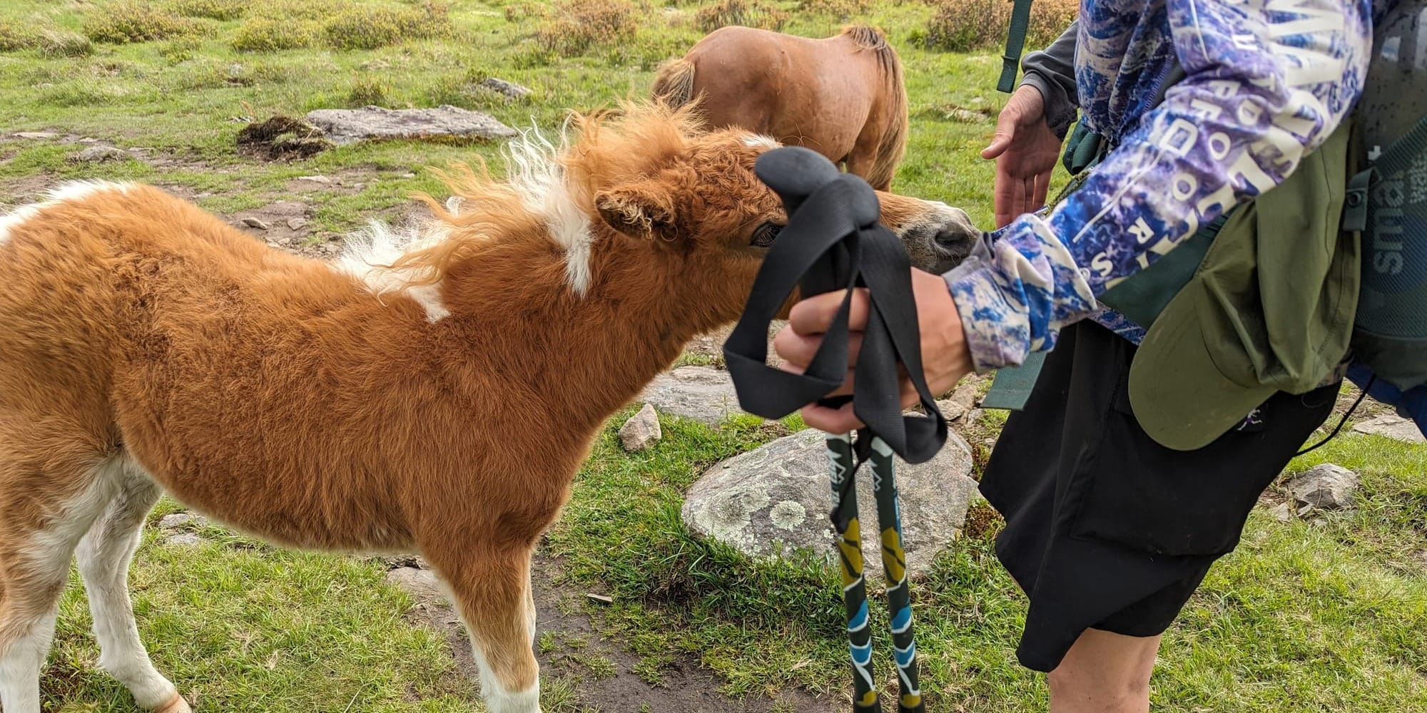In practice, the ponies are mostly tame. All of the ones we saw were branded, and most of them barely paid us any mind. Only the curious foals approached us, interested in nibbling the salt off of our clothing. It wasn't until midway through the park that we came across signs instructing visitors to not pet the ponies. Oops!
