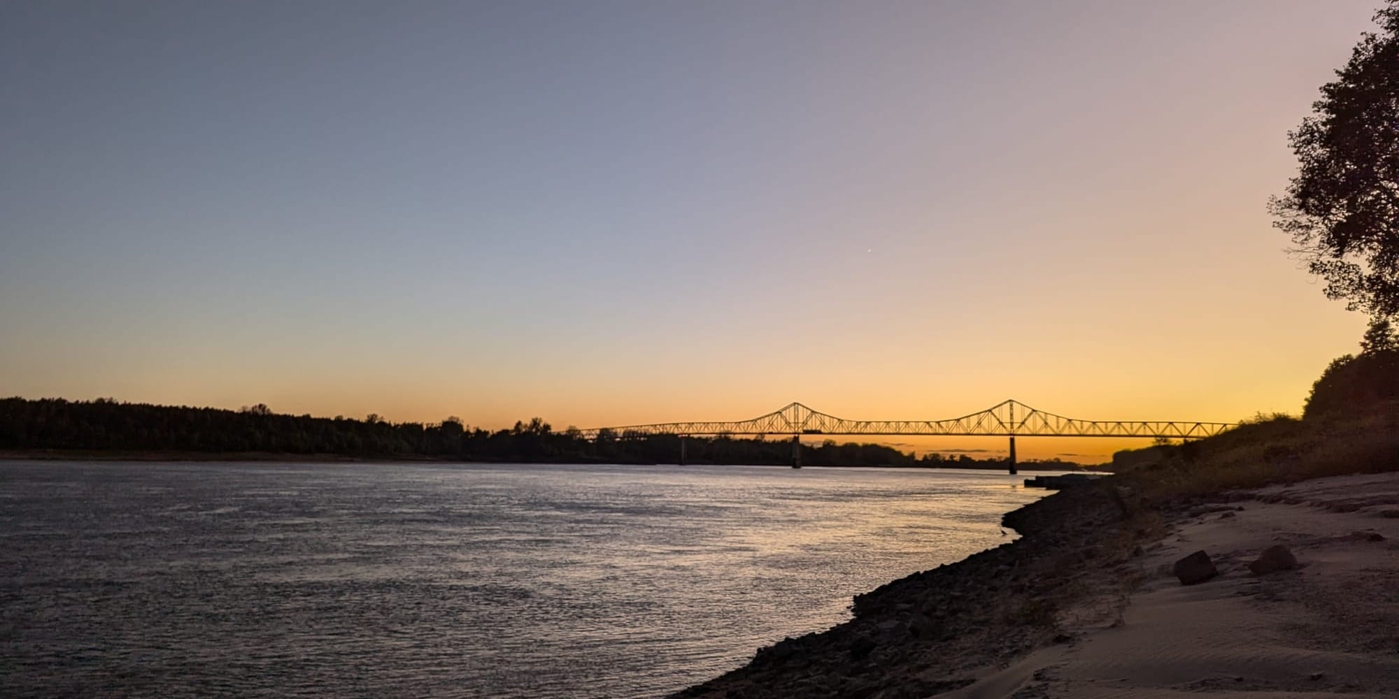 The first night was at Bird's Blue Hole in Missouri. I stopped at Fort Defiance to admire the confluence of the Mississippi and Ohio rivers, then parked by a boat ramp after dusk and set up shop.