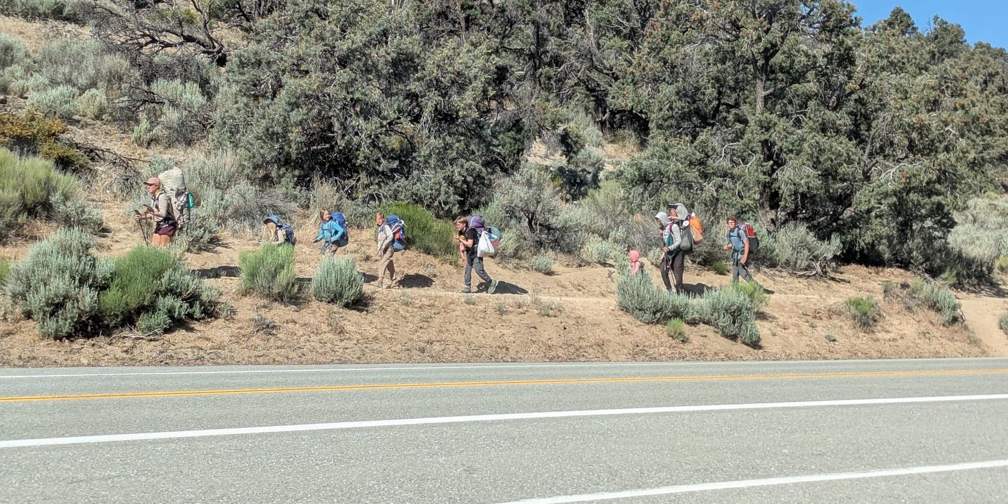 This was in peak PCT northbound season so there were more hikers crossing the road, but many were coming or going from the city of Ridgecrest, CA and needed rides more than refreshments. I spotted a family of nine hikers; two adults herded six children across the busy highway on a blind hill, with a toddler in a backpack.